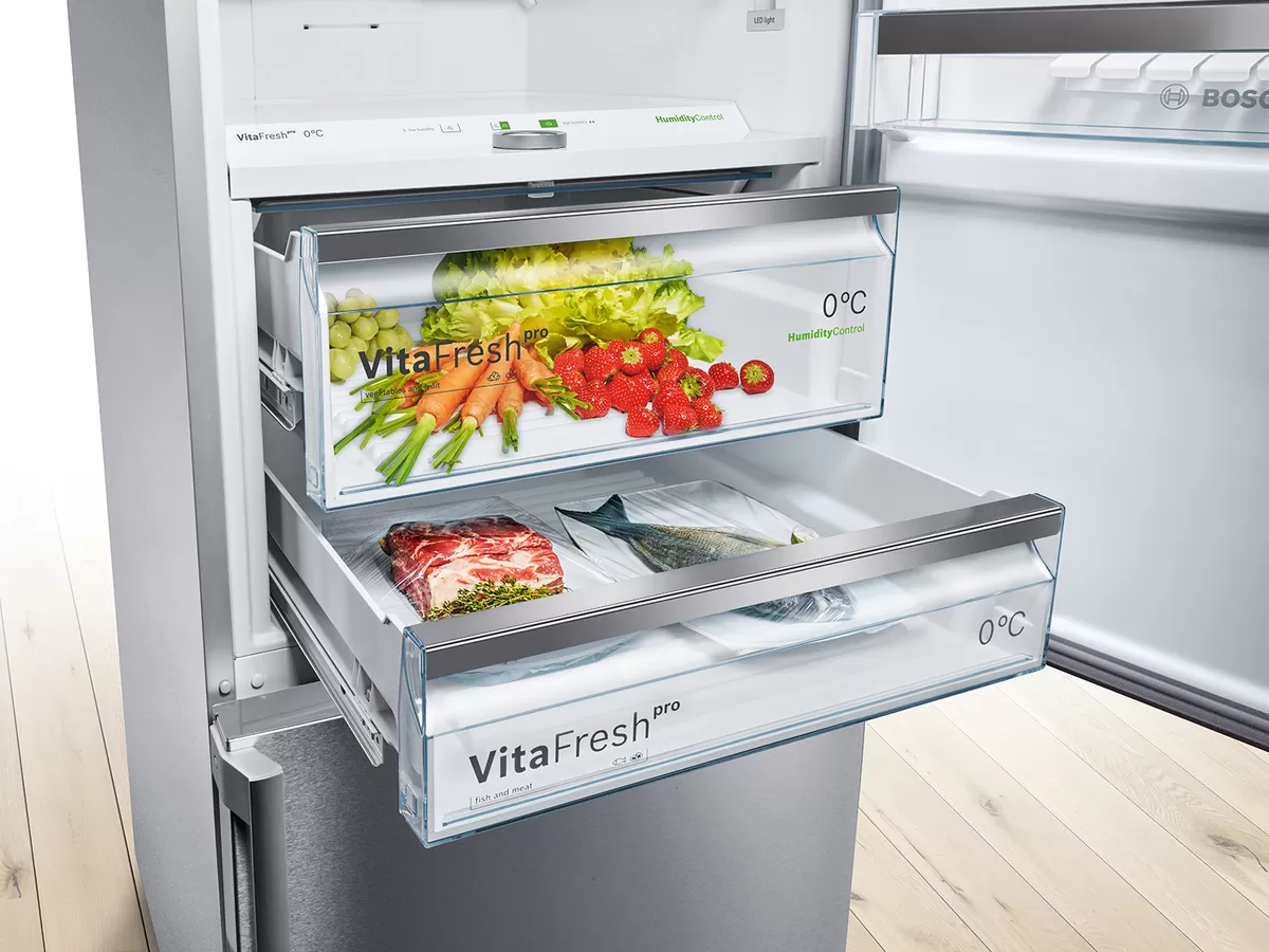 Otkrijte novu dimenziju hlađenja: Bosch Side-by-Side hladnjaci kombiniraju impresivan kapacitet s inovativnim tehnologijama. Vertikalni dizajn s odvojenim vratima ne samo da pruža obilje prostora, već omogućuje i intuitivnu organizaciju namirnica uz napredne sustave očuvanja svježine.