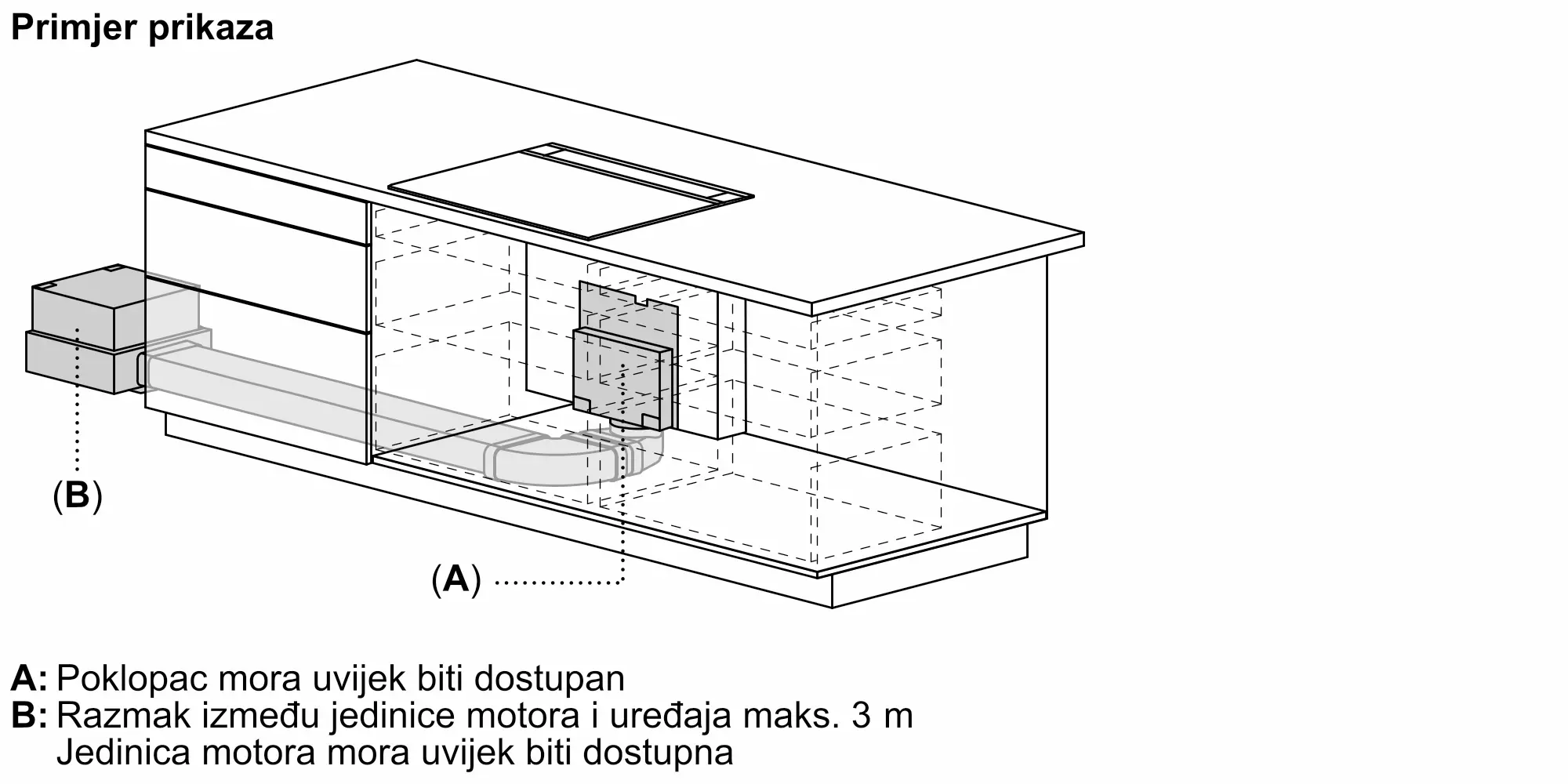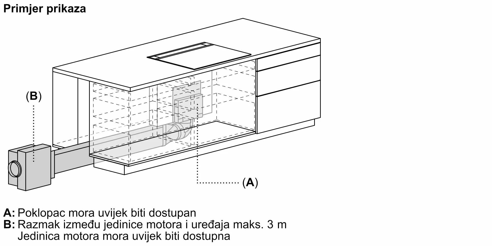 Ukljućuje potrebne dijelove za montažu za montiranje motora na udaljenosti do 3 m od jedinice za ventilaciju