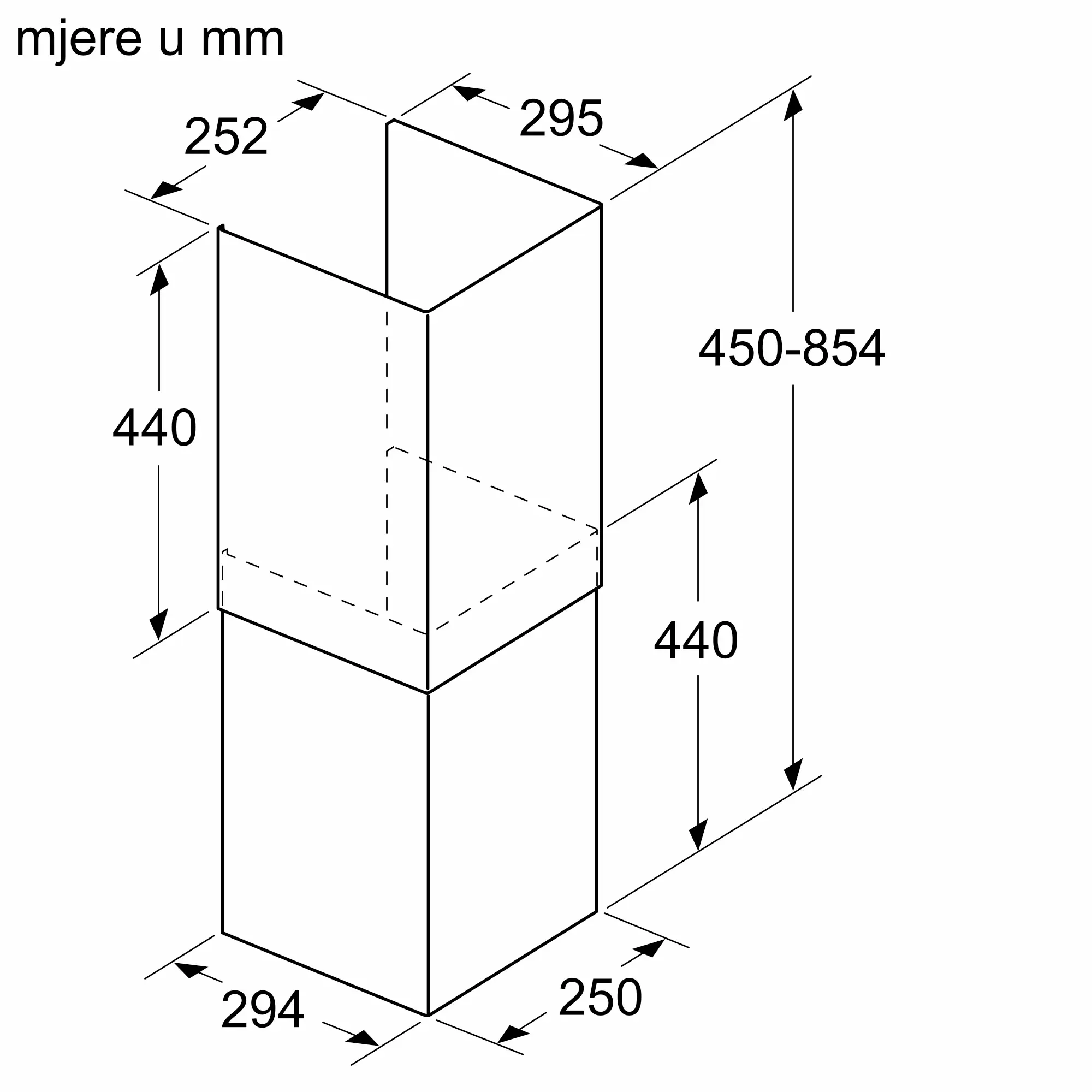 Produžetak dimnjaka 450-854 mm za ugradbene nape