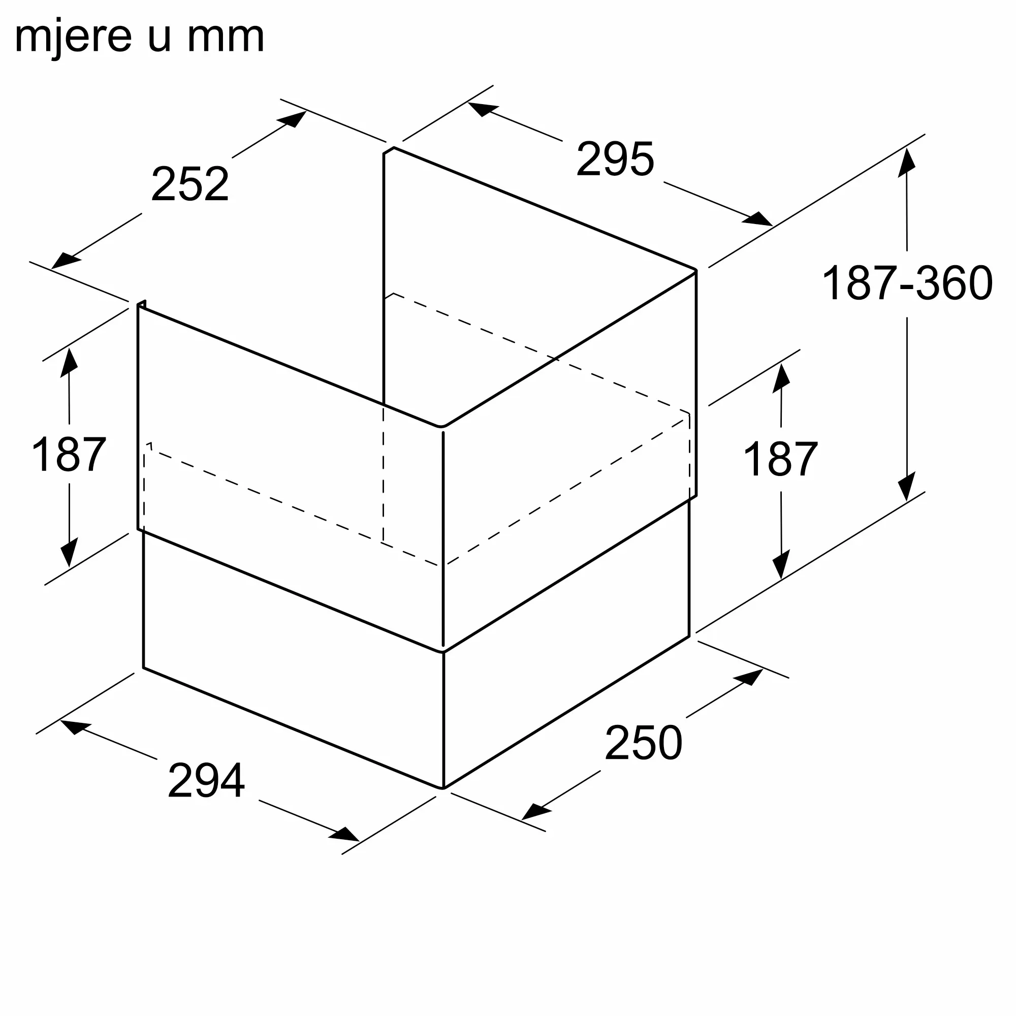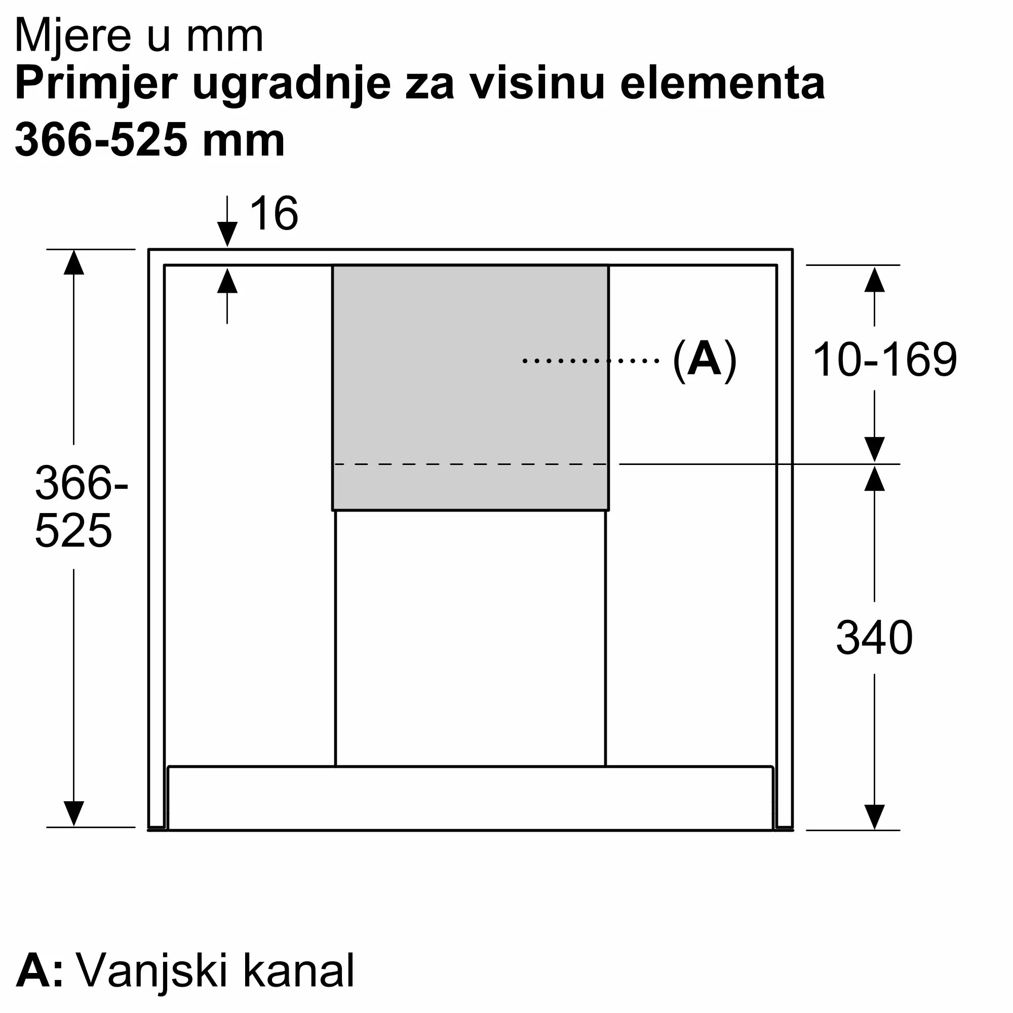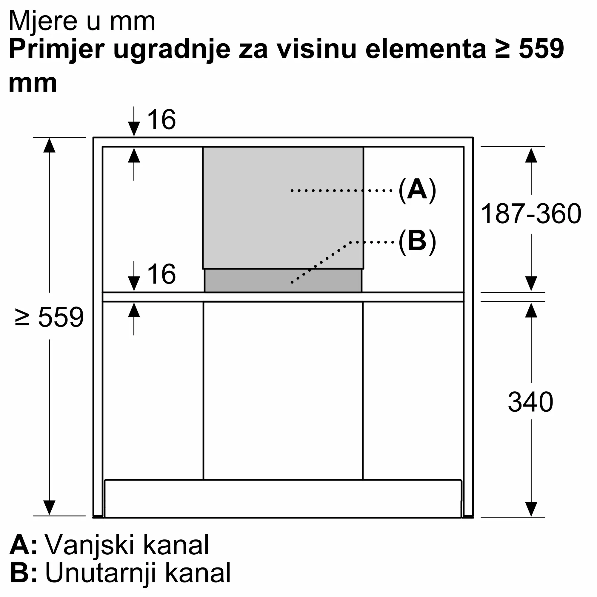 Molimo referirajte ugrađene dimenzije navedene u instalacijskom crtežu.