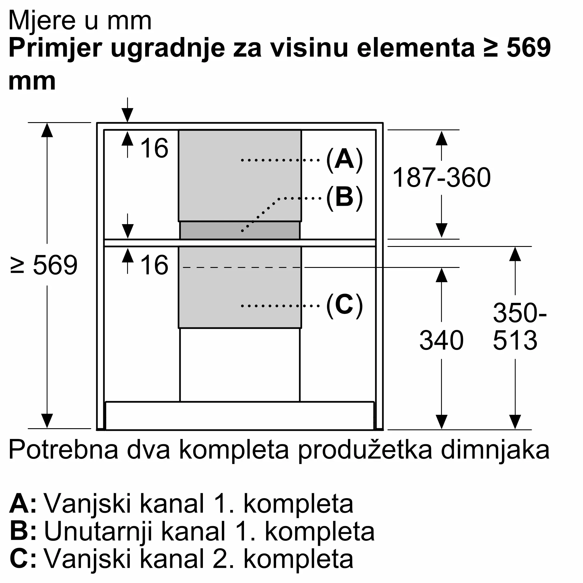 Proširenje za dimnjak 187-360 mm za integriranu napu