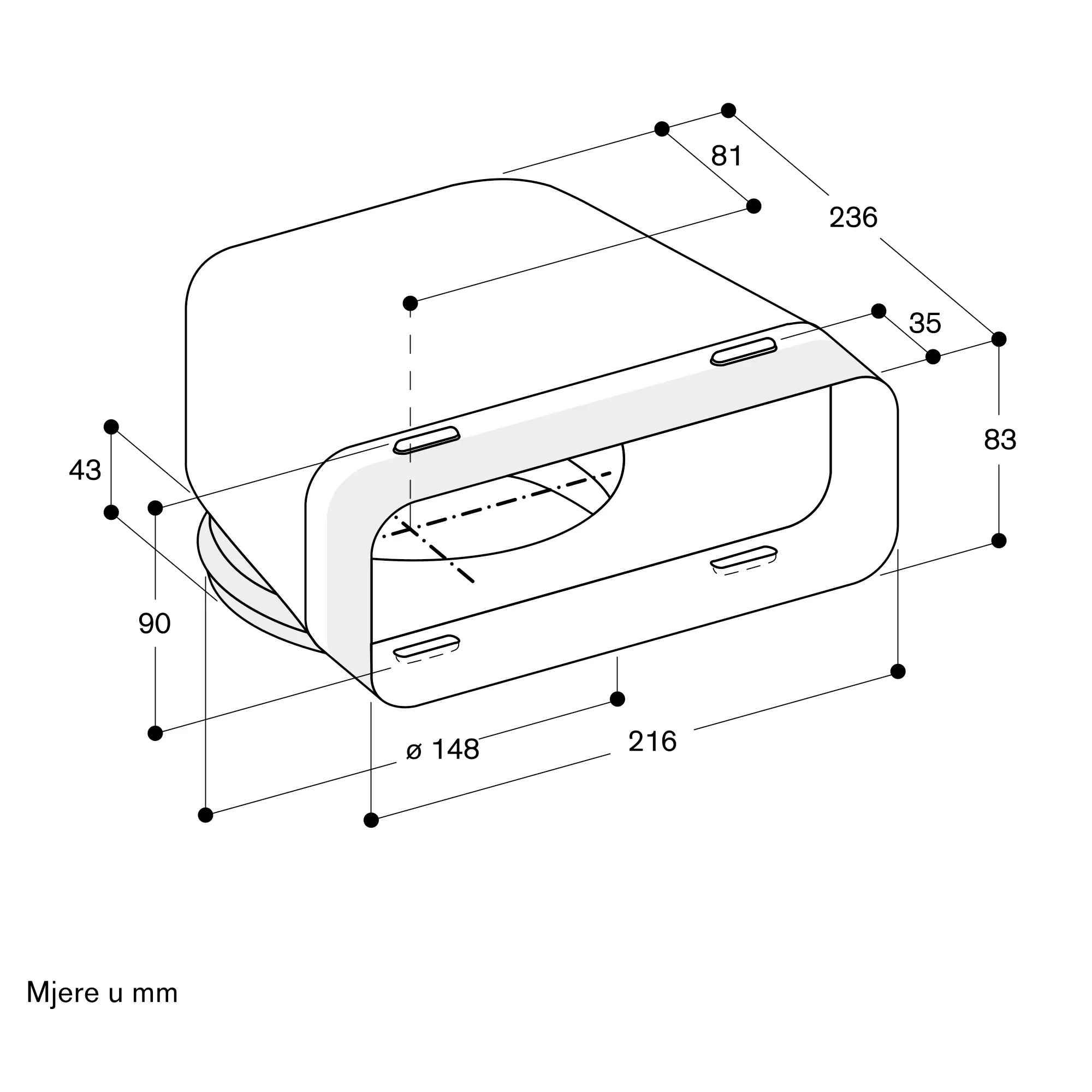 Spojnica ravna / okrugla s integriranim pramcem od 90º za uređaje s okomitim okruglim izlazom zraka (e.g. Glassdraft)