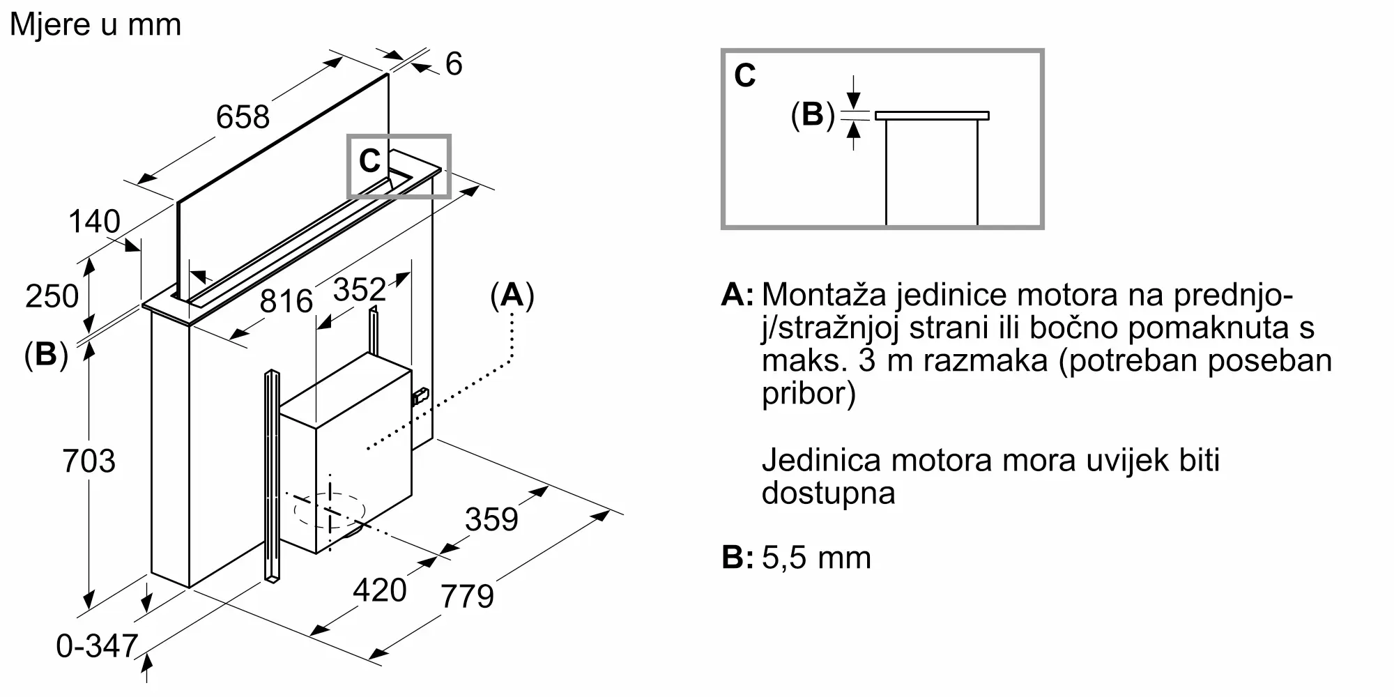 Serie 8 Podizna napa 80 cm staklo, CrnaDDW88MM66