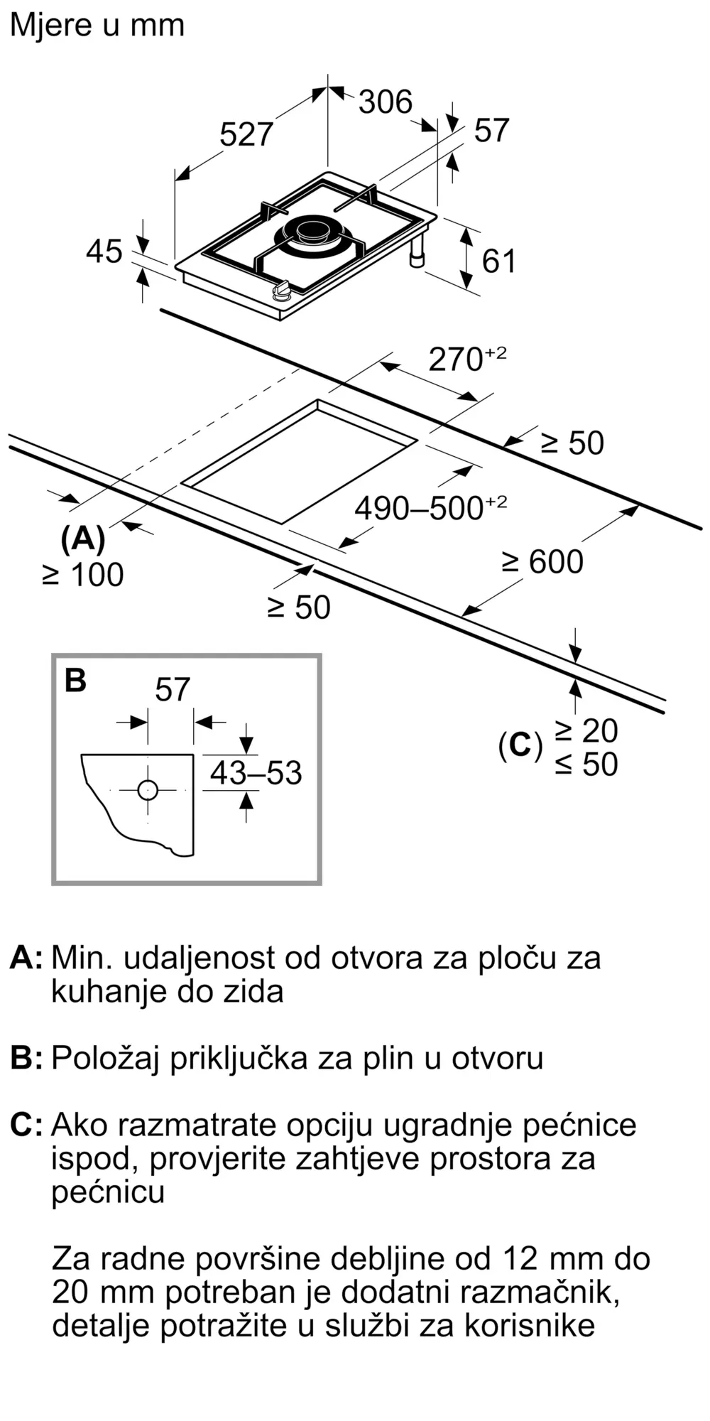 Serie 8 Domino plinska ploča za kuhanje 30 cm na staklokeramiki, CrnaPRA3A6I10