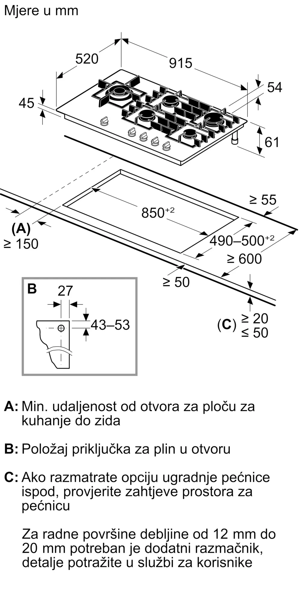 Serie 6 Plinska ploča za kuhanje 90 cm , CrnaPPM9A6I40